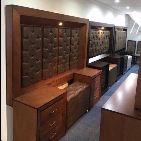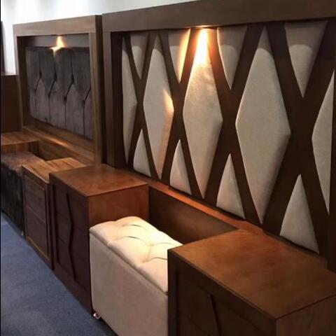 • Cabeceras Imponentes: Desde diseños capitonados en textiles premium hasta paneles de madera tallada que se convierten en la pieza central de la habitación.