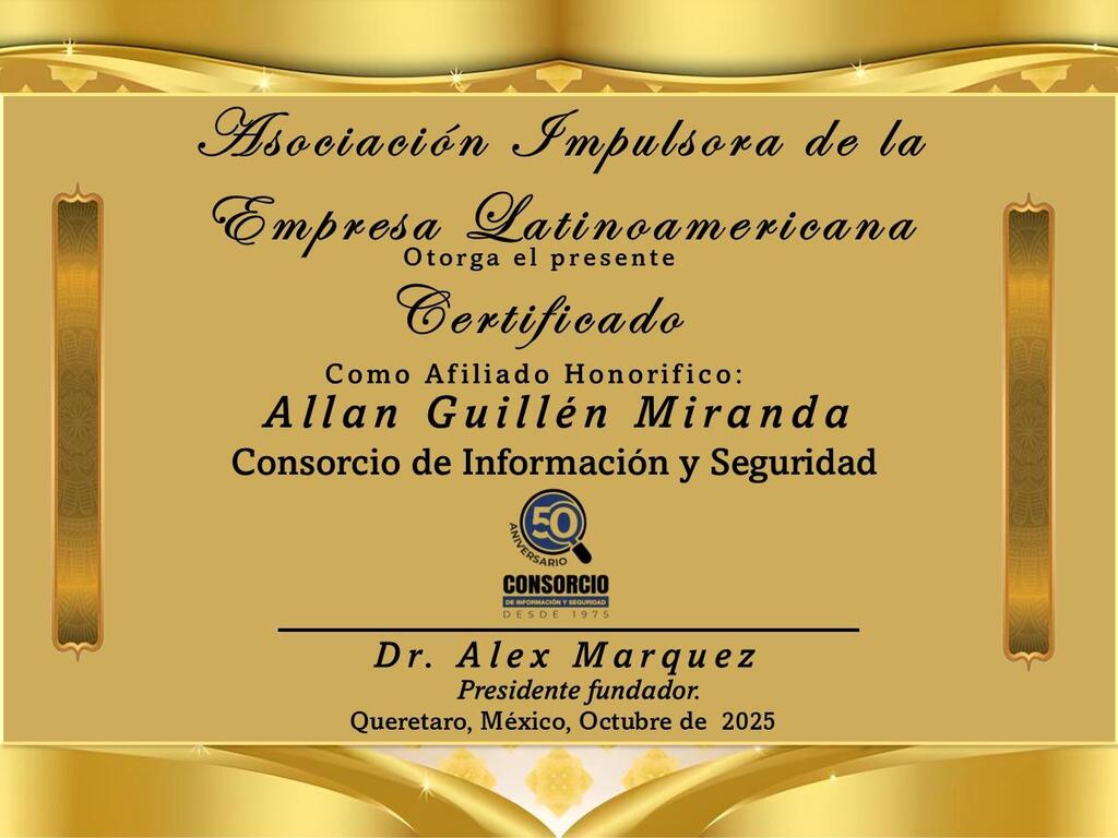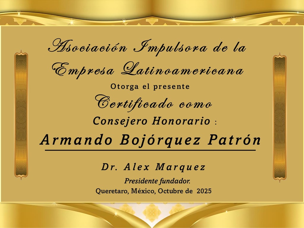 🏅 Por todo ello, hoy lo integramos como Miembro Honorífico de la Asociación Impulsora de la Empresa Latinoamericana.